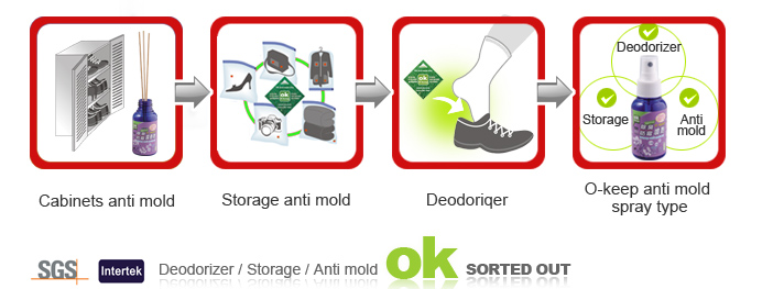 of wrapper on the top of shoes boxes and spray O-keep anti